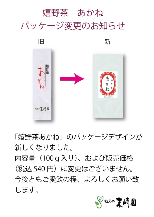2025.08.14 嬉野茶あかねパッケージ変更のお知らせ